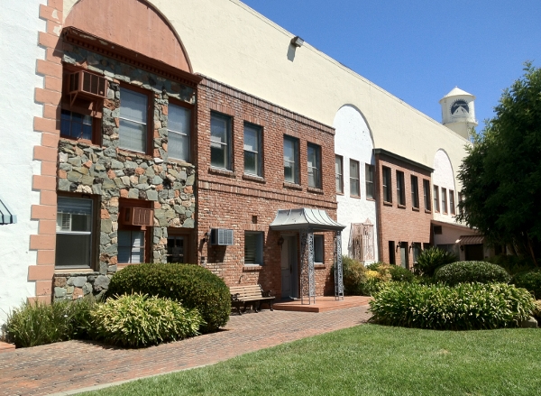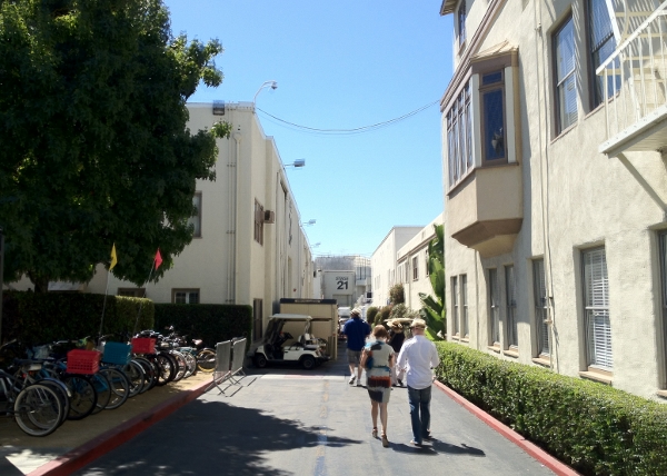 The Lucy Bungalows and Park add a totally different feel to the area.  Notice how each entrance section is different in texture and design?  They could all be used as exterior sets for apartment buildings.  These buildings (and all of the old RKO Studios soundstages) were just one of 3 studios owned in the 1950’s by Lucille Ball’s Desilu Productions, (the other two being in Culver City and another in Hollywood).  Of course they were eventually sold to Paramount, but owning a total of 39 sound stages between all 3 properties made them a larger company than I ever realized!