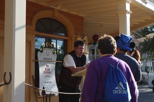 The first five shows are free, and guests go to the podium located at the entrance to the Golden Horseshoe Saloon. A cast member will give them a ticket for the show they want with the number that will be in their party.