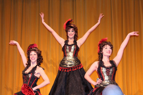 The show started with the musicians coming out and sitting down in front by the stage. They began to play and the dancers came out. There are three Can-Can girls, two dance girls, and two guys dressed as a cowboy and a man in a suit. All of them perform during the show. The main star is Miss Lilly. They perform about four to five numbers, and include some comedy. Some of my favorite songs were sung, and I was a little surprised to find that I still could sing along to them (to my delight, but, I’m sure not the rest of our table). The full songs weren’t performed, but they did dance to the famous Can-Can song. Miss Lilly also gives some history about the Golden Horseshoe and fun trivia. I even learned something new!