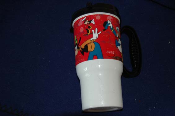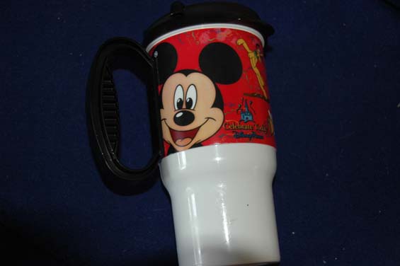 Update: July 2009. I am starting to notice a new variation of the mugs this year. They are starting to make an appearance at the Walt Disney World resorts. Coronado Springs now also uses the same mug as the rest of the resorts. You have a choice of yellow, red, black handles and same color lid. So it will be pretty easy to color code them for your family. They hold 12 ounces of soda. The cost was $12.99 plus .85 tax for a grand total of $13.84. The small print states: Refills available at no additional charge at Resort Beverage Islands located at the resort that this mug was purchased through the end of your resort stay.