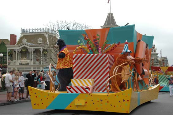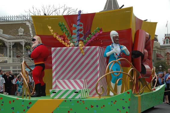 This parade really does a good job with the Celebrate theme for this year. The parade ties it together very nicely with the song The time of your life from the Disney commercials.