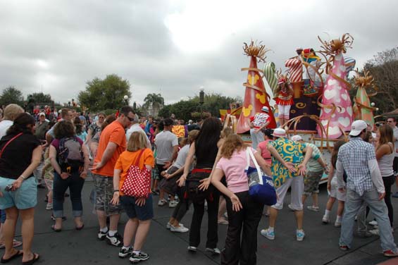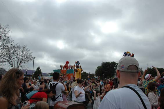 They invite the crowd to celebrate with them in the street. The music is very catchy. They play Hannah Montana, Breakout, I like to Move it. It was a lot of fun!!! I loved watching the crowd conga, shake their tail feathers.