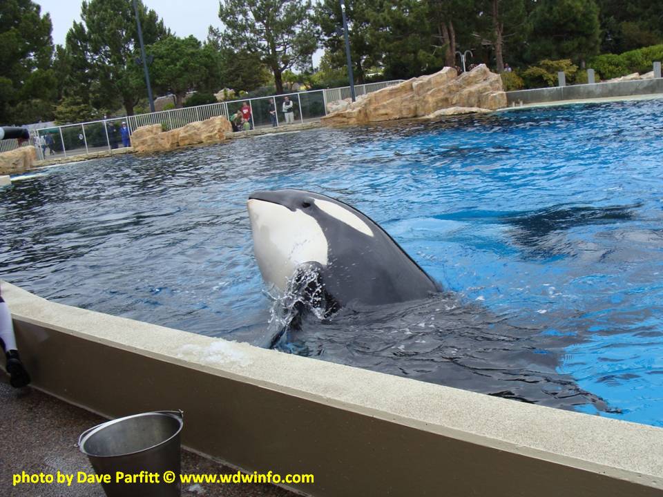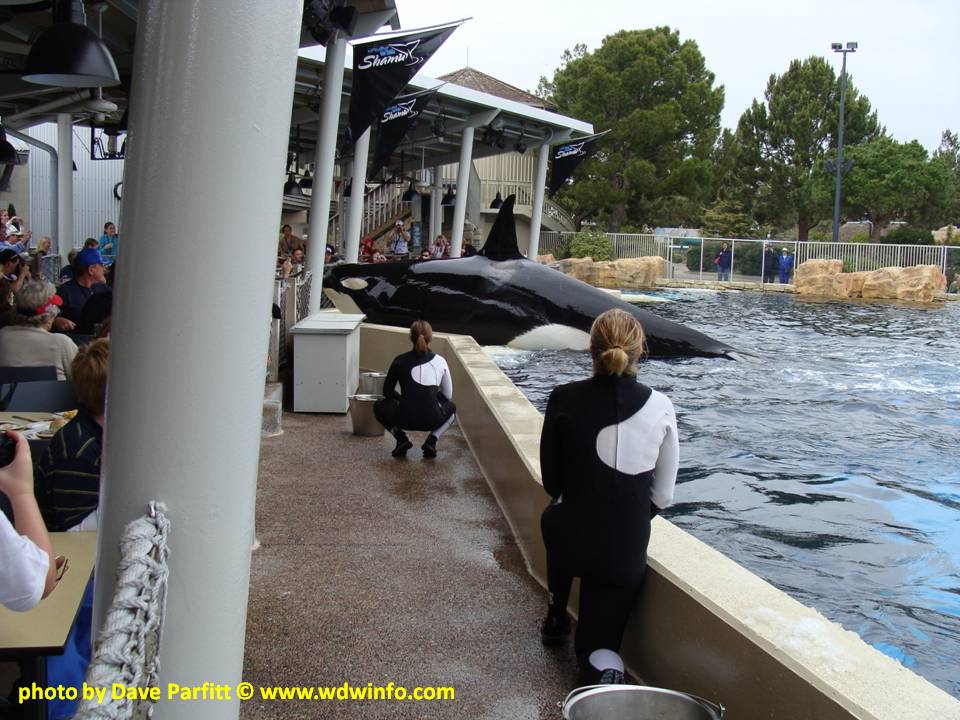 My lunchmate was an 8,000 pound killer whale named Corky, and my seat was right beside the killer whale pool. Throughout the meal Corky swam all around and right up beside the tables. There were even shallow pools where the killer whale could get really up close to the diners. Finally, there were two trainers at the pool that told the audience all about the whales and answered questions throughout the lunch.