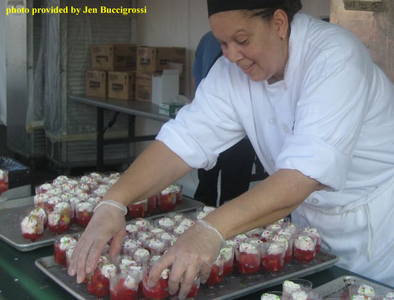 Once you crossed the finish line, the event was not yet over. A picnic was laid out where finishers could sample selected food items from the EPCOT International Food and Wine Festival until 10:00am. Your bib number had tear-off tabs you could exchange for food items at four different taste stations. The stations included a rice chicken dish, beef empanadas, salmon, and strawberry shortcake. Jen Buccigrossi said she was pleasantly surprised by the picnic, there were plenty of tables to sit and relax, and the food was tasty (even empanadas at 9:00 am). Jen also said the food was plentiful as fellow racers were gladly sharing their tabs to exchange for the dishes.