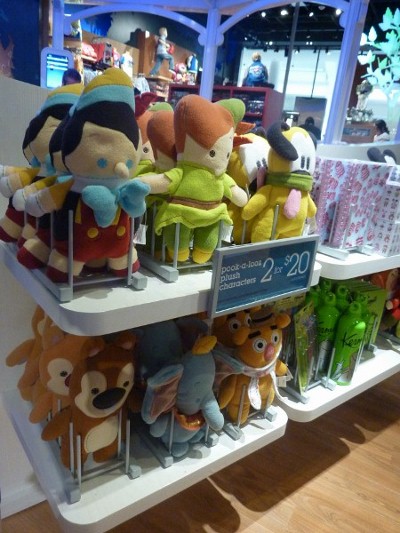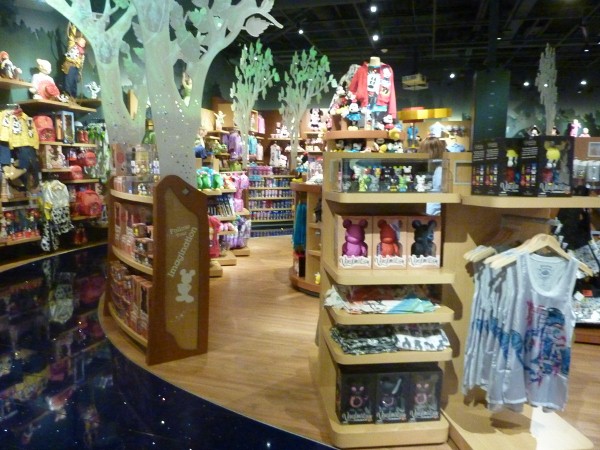 So I guess now what you will ask is, what other merchandise is different? Is this the usual Disney Store stuff? Yes, and No. There is certainly a lot of the normal things, after all, there are certain things the Disney Store is known for. The stuffed animals are off in the back corner, with princess dolls here and there. The kids’ clothes are scattered with their appropriate themed toys and placed in age groups. The big thing is what is actually featured near the middle of the store. They are carrying higher end merchandise! I found a couple lines of Vinylmation – including the brand new Toy Story pieces and some of the T-shirts, Pook-a-loos, Disney Couture clothing – in slightly larger sizes than at the parks, and other specially designed merchandise, like my sequined Minnie Mouse T-shirt!