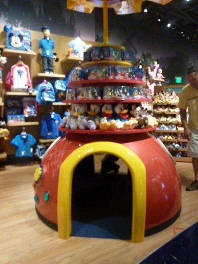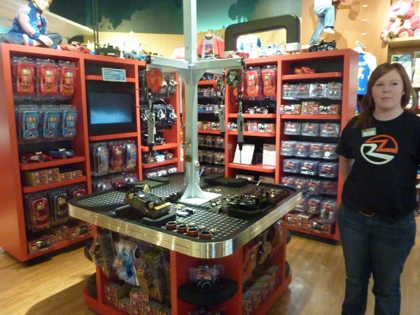 Since I just showed a photo of some of the merchandise directed at boys, let’s jump back to the front of the store and look at the Boys/Pixar zone. The only small oddity in the theming here (that really can’t be helped) is the Ridemakerz mechanics area. Even though it seems like an odd fit for the main forest theme of the store, it’s also is one of the more popular areas for kids! My first thought was “Wow – Ridemakerz got an even sweeter contract with Disney than I expected!!!” Think about it. First, 2 large stores – 1 in each of the Orlando and Anaheim Downtown Disney locations, and now having their products featured in The Disney Store. If they were publicly traded, I might buy their stock… But, I digress. Let me tell you about what they uniquely offer at the Disney Store.