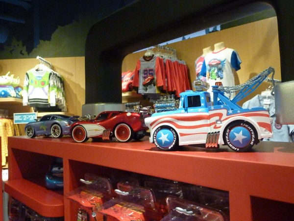 I got a chance to talk to Ryann, the Ridemakerz rep that is on hand for the next couple weeks, and she told me that, right now, this is the only place in the world that you can get CARS themed Ridemakerz vehicles – you can’t even make them at either Downtown Disney locations. There are 4 versions of Lightning McQueen (regular, Radiator Springs-Ramone custom paint job, Dynaco, and Stealth Ninja from Tokyo Mater – Mater’s Tall Tales), 3 versions of Mater (regular, Mater the Greater, and Stealth Ninja Mater – both from the Mater’s Tall Tales shorts), and currently 1 version of Sally. Another is expected soon. They even went to the detail of knowing which body style has which headlights that work. For instance, in the regular version, only Mater’s right headlight works, but in the Mater the Greater short film, he had no headlights at all in his “Evil Knievel suit”. I thought that attention to detail was pretty impressive.