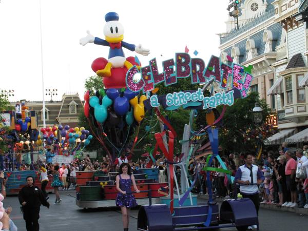 Thursday, November 11 marked the end of the disappointing Celebrate! A Street Party and I was there to make sure that Disneyland wasn’t just pulling our legs. Celebrate, which has been partying in the streets since March 2009, will be replaced next year with the Soundsational Parade. Read on for a few pics from the final show.