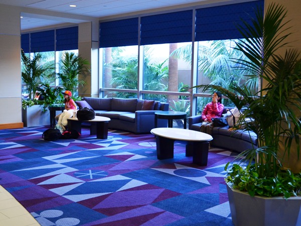 The lobby seating area opposite the front desk has a distinctive “Mary Blair” style in the carpet and furnishings. You can’t help but feel excited about all the new adventures you are about to encounter at this resort.
