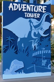 Image: Newly refurbished Adventure Tower from the Downtown Disney side.