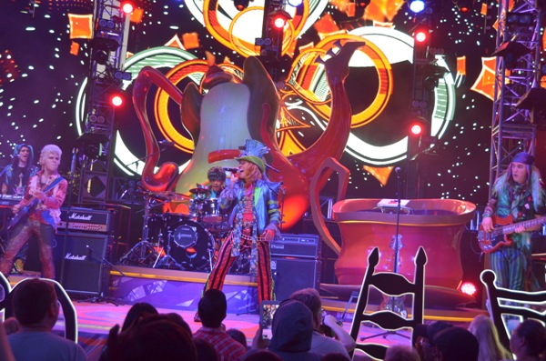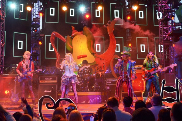 The main performance stage is the centerpiece of the Mad T Party. Hosted by the Mad Hatter himself as lead singer and performer, each member of the band represents a different character from Alice in Wonderland and each one has an amazing costume. The Dormouse plays lead guitar, the March Hare is on bass, the Cheshire Cat has the drums, and the Caterpillar is the keyboardist. Each one is unique and together they make quite a band.
