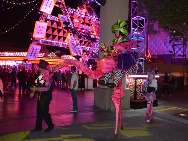 The Mad T Party, like the other street parties at California Adventure is located in the back side of the newly renamed Hollywood Land area. Like the other street parties, the Mad T Party features lively music, crazy characters, specialty acts and entertainment, food and special “adult” drinks and a few more surprises thrown in. The entertainment is non-stop and once again you are overwhelmed with sounds and sights as soon as you enter the area.
