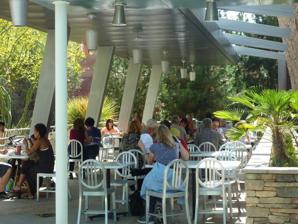 On the other side the of café are more tables, some under shade, where diners can enjoy an outdoor meal overlooking the panoramic Ornament Valley, and what a beautiful view it is!