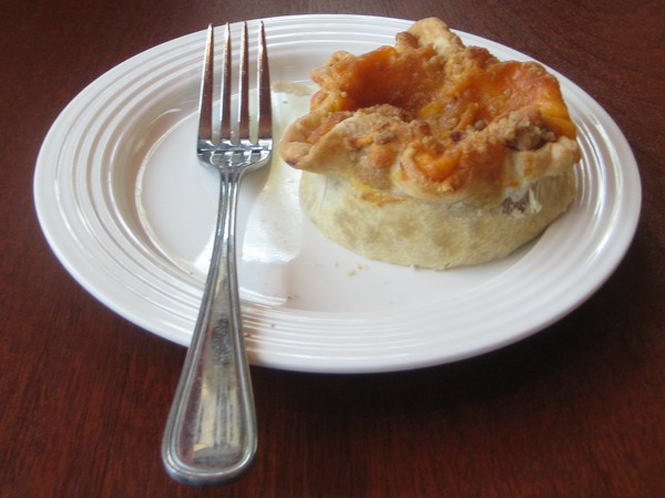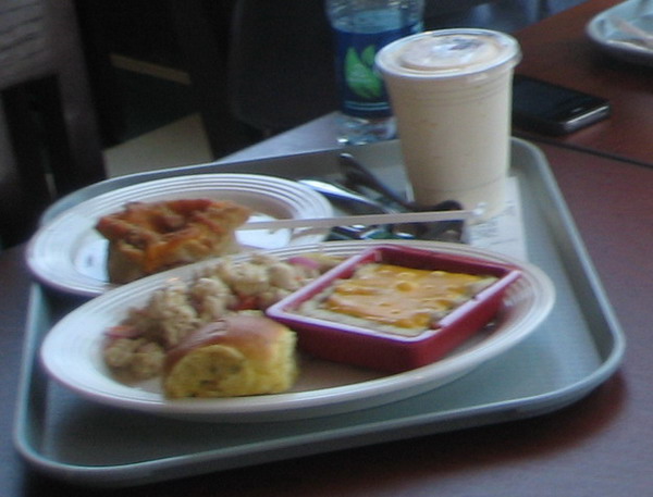 On Monday, I had lunch with my daughter Kelly, Disneyland DIS Unplugged podcaster Tony Spittell, and our friend, Chris Vettel. I had the Veggie Tater Bake with pasta salad, Tony had the pork loin with baked beans and coleslaw, and Kelly had the NY Strip Loin with baked beans and corn medley. Kelly and Tony were not too impressed with their lunches. They thought the meat was a little bland. I thought my lunch was delicious, and my veggie tater bake tasted a lot like shepherd’s pie. It was really good. I would definitely order that again. Chris just had some dessert, and ordered the apple pie with cheddar. She shared it with all of us. I thought it tasted pretty good. Kelly (being a chef) thought that they should have put more apples and less cheese.