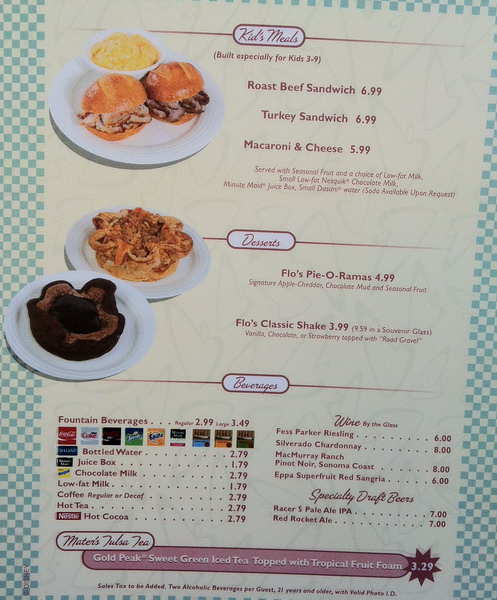During the annual pass holder previews, I had the opportunity to have lunch at Flo’s V-8 Café twice with different friends, so we were able to try a variety of the dishes offered.