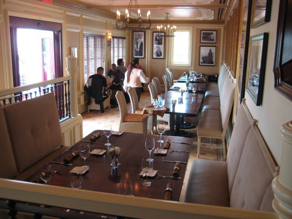 The restaurant has four main sections. On the main floor are the foyer, where guests check in, and a lounge that offers drinks and snacks. Club 1901, California Adventure’s counterpart to Club 33 can also be found here via a separate entrance.