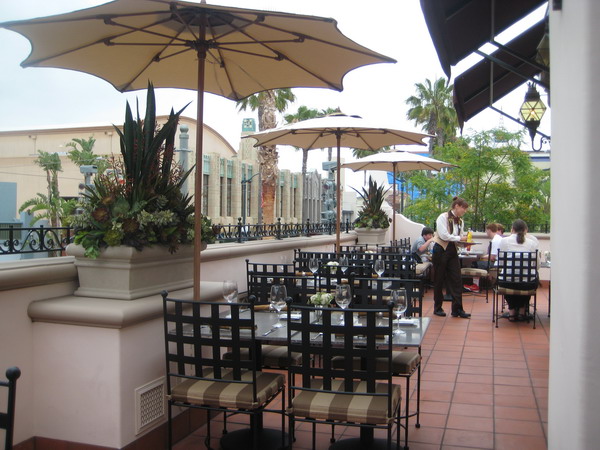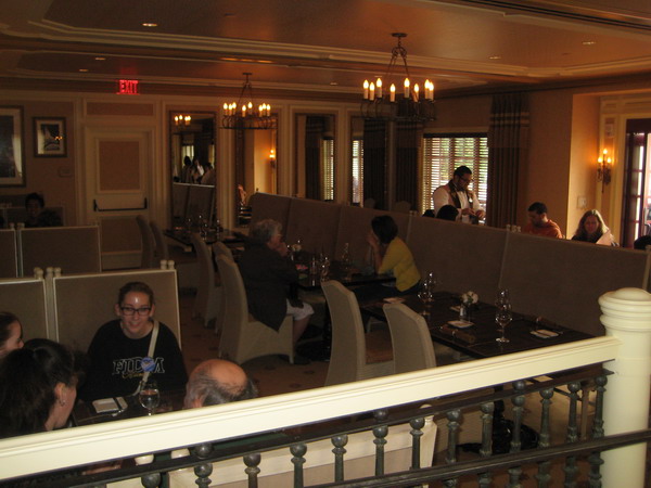 This balcony looks out to the north, and from here you can enjoy such entertainment as the Red Car News Boys show on Buena Vista Street, the Fireworks at night, or just people watching as you enjoy your meal. I did not notice heat lamps, though, so I wonder what it will be like to eat here on cool evenings.