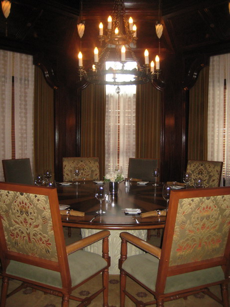 Other rooms were much more intimate. They all had names. There was one room that I thought would be good for meetings or a small group dinner. I think this one was called the Buena Vista Room, and sits ten around the table. This room is in the main tower of the building, as evidenced by the round walls.