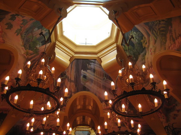 The main room has a cupola, with forest scenes painted around it that look like they are right out of Snow White.