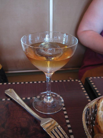 Mike (Flynn Rider on the boards) also ordered a Carthay Manhattan. They brought a sphere of ice for it.