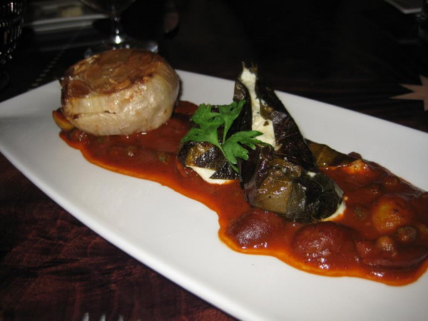 For appetizers, we ordered grape leaves and goat cheese, with a side of roasted garlic. This was good, especially the garlic (it was soooo good). We also ordered the Duck Wings and the Halibut Ceviche. We sampled the appetizers, and we all declared them to be pretty delicious.