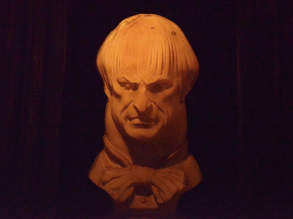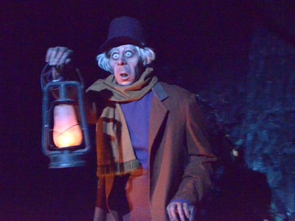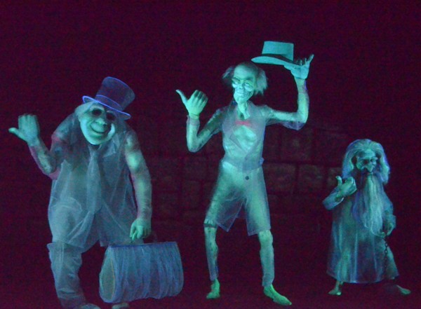 The Ghost Host, who is heard throughout the attraction, is performed by Paul Frees, who is also used in several roles throughout Disneyland. One of the singers of the “Grim Ginning Ghosts” song and also the voice and face of one of the singing busts in the graveyard is another famous Disney performer, Thurl Ravenscroft.